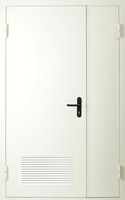 Стеклопакет не ставится, потому что необходимость в обзоре происходящего за пределами помещения отсутствует, зато почти всегда устанавливаются ручки пуш-бар «Антипаника» и доводчик. Конструкции для электрощитовых оснащаются вентиляционными решётками.